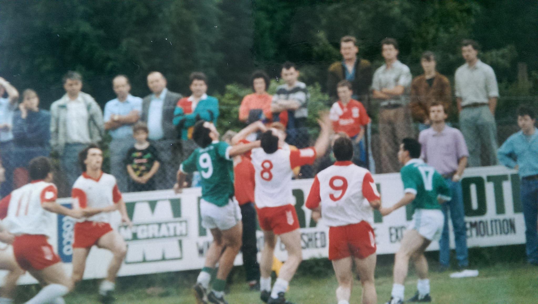 Facial hair was obviously big in the 1990s. Brendan Curran and Denis McCarthy (RIP) – both St Clarets, along with Billy Galvin, Paddy Corscadden and Mick Comer.